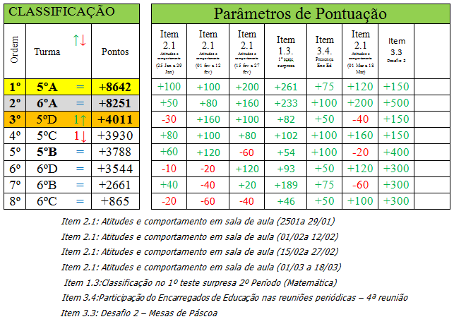 As melhores aprendizagens; as atitudes e comportamentos mais adequados; o trabalho em equipa mais eficiente; a participação dedicada dos encarregados de educação.